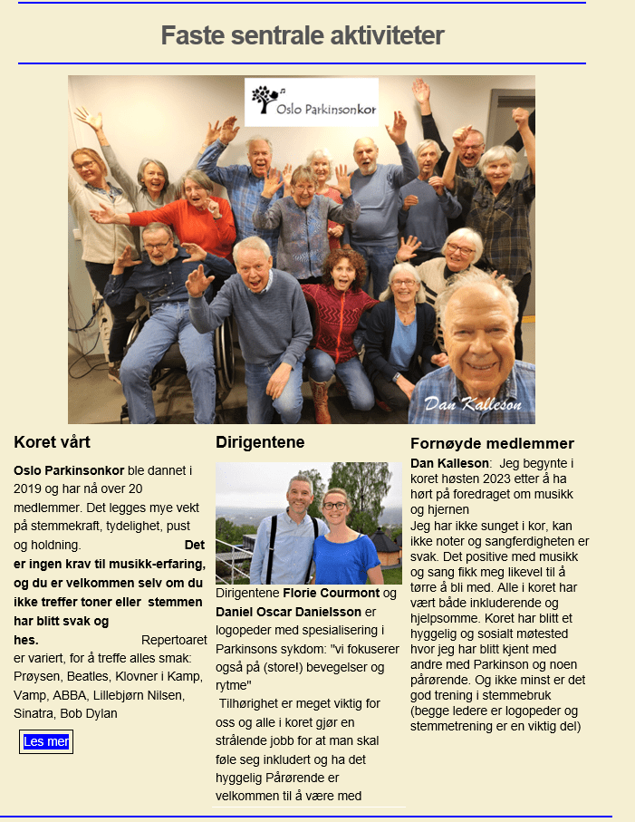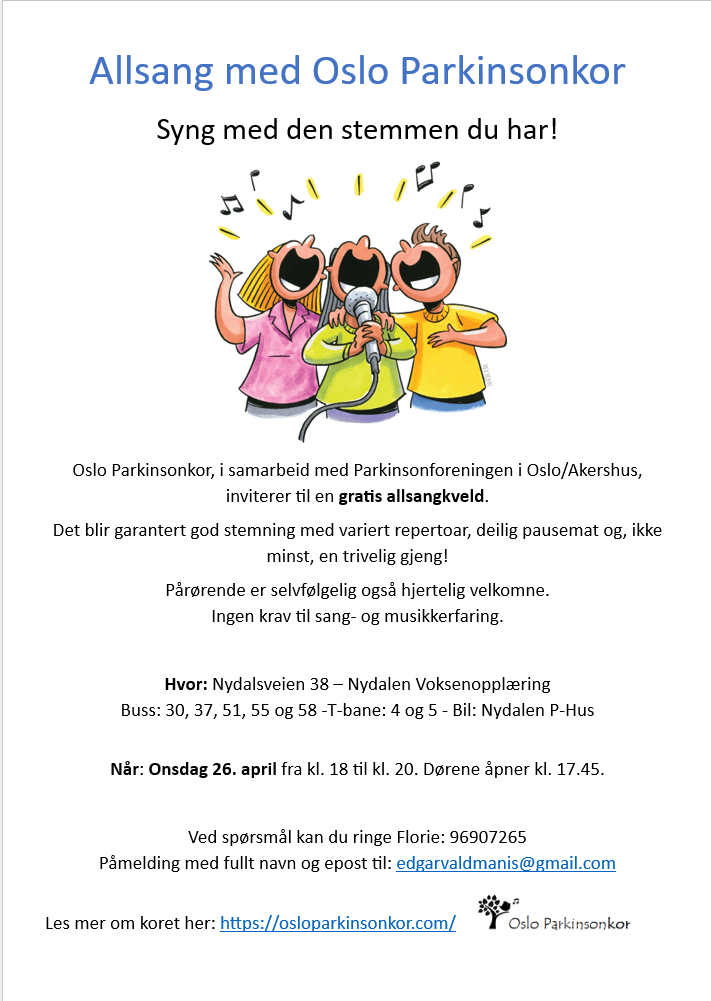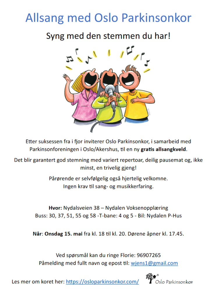 - Onsdag 1. juni: hos Oslo Vest parkinsonforening på Vindern seniorsenter kl. 18