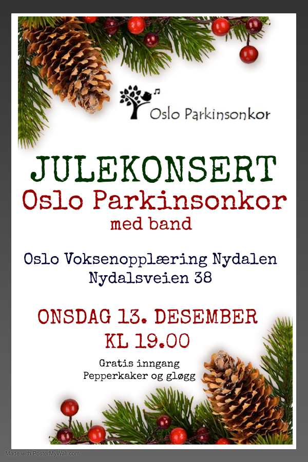 Desember 2019: Velkommen til julekonserten til Oslo Parkinsonkor på Unicare Fram onsdag 4. desember kl 19.30.