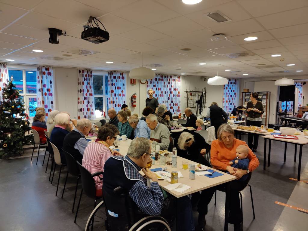 Vi hadde også en deilig julelunsj hvor alle bidro med en rett. Svein som fylte 80 år i november ga koret over 3000,- som gikk til musikerne som stilte opp for koret. Tusen takk Svein!
